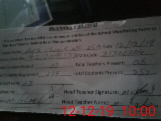| Attendance Register | Head Teacher | MEA with School | Visit Proof |
