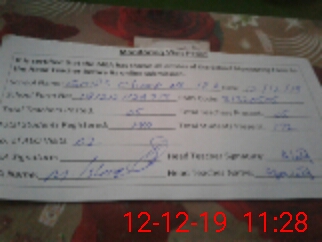 | Attendance Register | Head Teacher | MEA with School | Visit Proof |