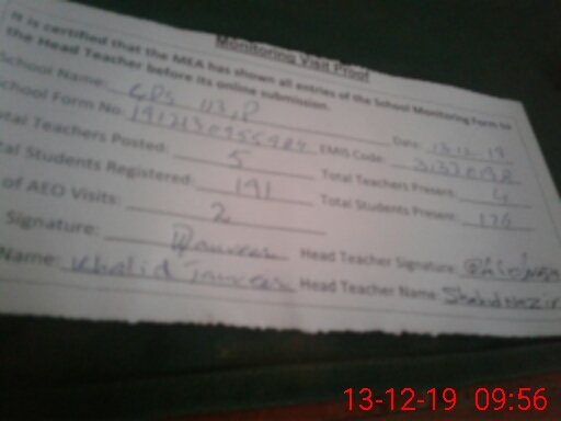 | EMIS Code: 31330198 | Name of School: GPS CHAK NO. 113/P | |||