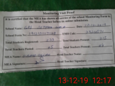 | Certified that this School was Inspected by the Undersigned MEA/DMO Today and the Information Stated Above is as Per Record. | |||||