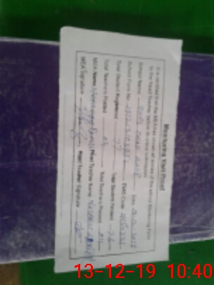 | School Visited by School Health & Nutrition Supervisor (No. of Visits) | Name1: | ABDUL RAZAK | Name2: | ||