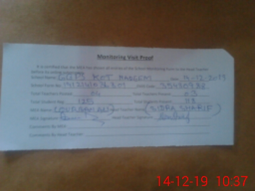 | EMIS Code: 35430988 | Name of School: GGPS KOT NADEEM | |||