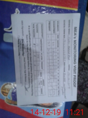 | Monitoring Date: 14-12-2019 | Start Time: 14-12-2019 09:54 AM | End Time: 14-12-2019 11:24 AM | Name of MEA: Am**** Mu**** Kh**** | |