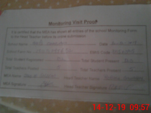 | Attendance Register | Head Teacher | MEA with School | Visit Proof |