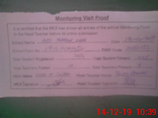 | Certified that this School was Inspected by the Undersigned MEA/DMO Today and the Information Stated Above is as Per Record. | |||||