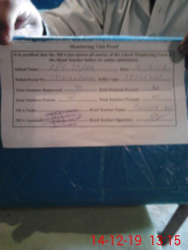 | Attendance Register | Head Teacher | MEA with School | Visit Proof |