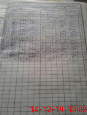 | CNIC | Full Name | Designation | R/C | Absence During Last Calender Month |