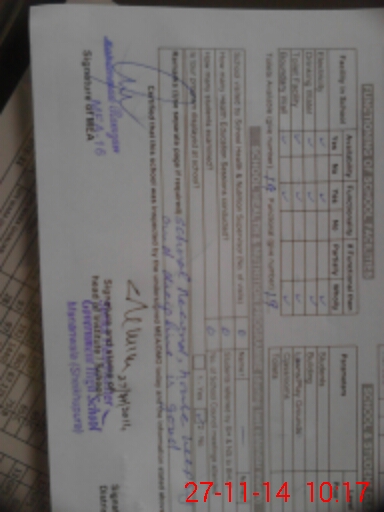 | Remarks (Use Separate Page if Required): School record house keeping cleaning and discipline is good This school is requires more 8 class rooms to reduce the rush in some classes Boundary wall requires repair | |||||
