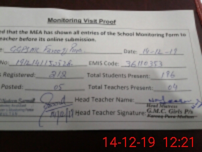 | EMIS Code: 36110353 | Name of School: GGPS MC FAROOQ PURA MULTAN | |||