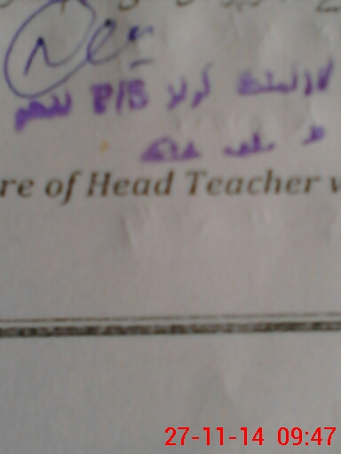 | Name: No**** UlHu**** Designation: (School Headmaster's/Headmistress's) PST Phone/Cell Number: 03**** |