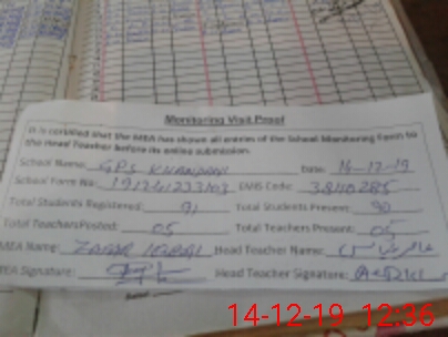 | Attendance Register | Head Teacher | MEA with School | Visit Proof |