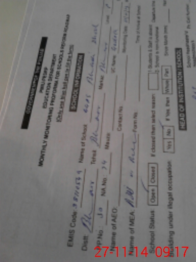 | Name: Sa**** Ba**** Designation: (School Headmaster's/Headmistress's) ESE Sci Math Phone/Cell Number: 03**** |
