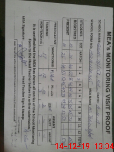 | Remarks (Use Separate Page if Required): Abeida Khanim SHM is physically present in school but her name is not included in MEA tablet Total filled posts are 12 now | |||||