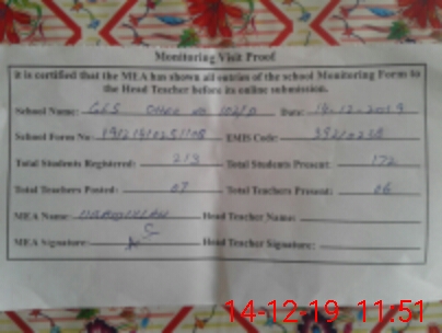 | Certified that this School was Inspected by the Undersigned MEA/DMO Today and the Information Stated Above is as Per Record. | |||||