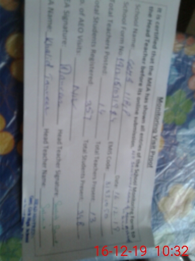 | Certified that this School was Inspected by the Undersigned MEA/DMO Today and the Information Stated Above is as Per Record. | |||||