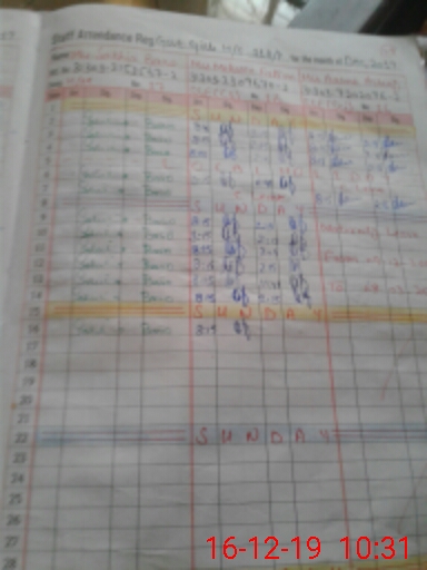 | No. of Students Present - Female | 2 | 0 | 13 | 23 | 30 | 20 | 25 | 16 | 33 | 20 | 27 | 26 | 25 | 260 | ||