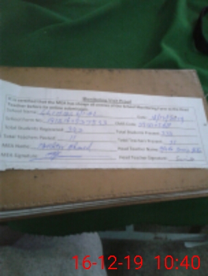 | Certified that this School was Inspected by the Undersigned MEA/DMO Today and the Information Stated Above is as Per Record. | |||||
