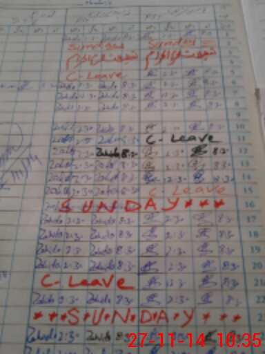 | CNIC | Full Name | Designation | R/C | Absence During Last Calender Month |