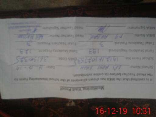 | Certified that this School was Inspected by the Undersigned MEA/DMO Today and the Information Stated Above is as Per Record. | |||||