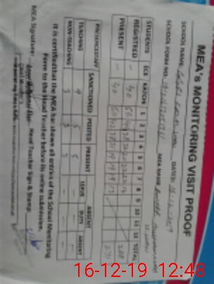 | Certified that this School was Inspected by the Undersigned MEA/DMO Today and the Information Stated Above is as Per Record. | |||||