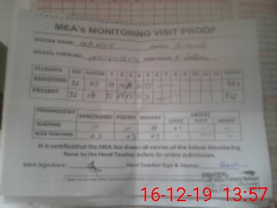 | Attendance Register | Head Teacher | MEA with School | Visit Proof |