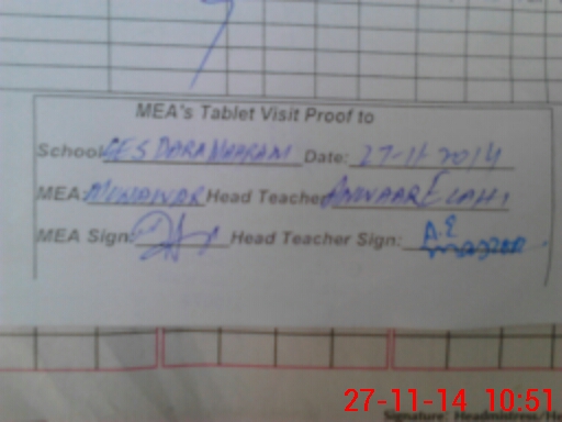 | Attendance Register | Head Teacher | MEA with School | Visit Proof |