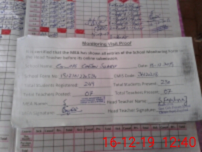 | Attendance Register | Head Teacher | MEA with School | Visit Proof |