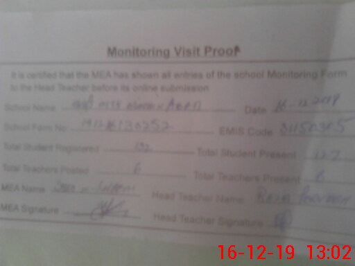 | Certified that this School was Inspected by the Undersigned MEA/DMO Today and the Information Stated Above is as Per Record. | |||||