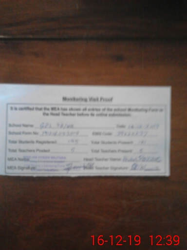 | Certified that this School was Inspected by the Undersigned MEA/DMO Today and the Information Stated Above is as Per Record. | |||||
