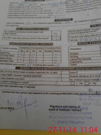 | Monitoring Date: 27-11-2014 | Start Time: 27-11-2014 10:26 AM | End Time: 27-11-2014 11:04 AM | Name of MEA: Mu**** Ra**** | |