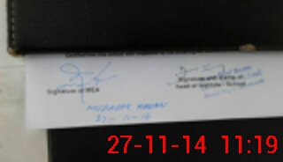 | Monitoring Date: 27-11-2014 | Start Time: 27-11-2014 11:06 AM | End Time: 27-11-2014 11:22 AM | Name of MEA: Z-**** Ha**** | |