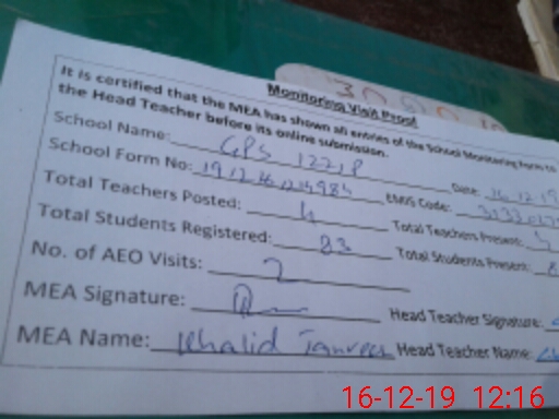 | Name: Gh**** Mu**** Designation: (School Headmaster's/Headmistress's) PST Phone/Cell Number: 03**** |