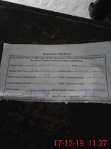 | Attendance Register | Head Teacher | MEA with School | Visit Proof |