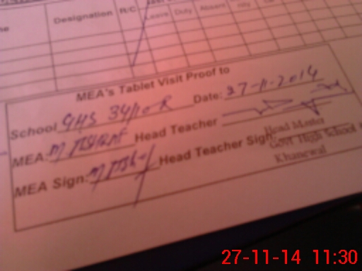| Attendance Register | Head Teacher | MEA with School | Visit Proof |