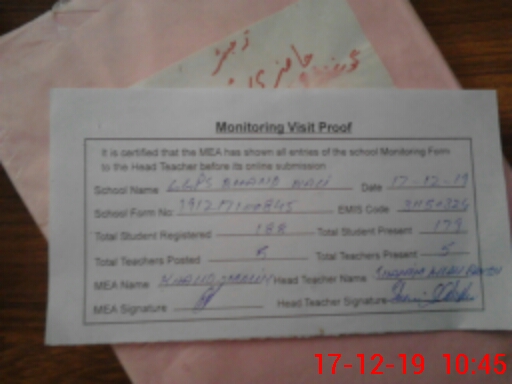 | Attendance Register | Head Teacher | MEA with School | Visit Proof |
