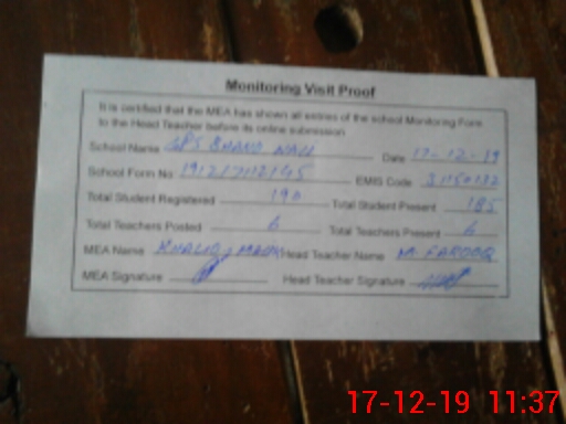 | EMIS Code: 31150132 | Name of School: GPS BHAND WALI | |||