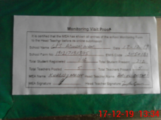 | EMIS Code: 31150181 | Name of School: GPS ADHAN WAH | |||