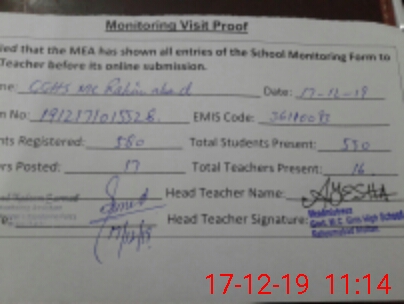 | EMIS Code: 36110093 | Name of School: GGHS MC RAHIM ABAD MULTAN | |||