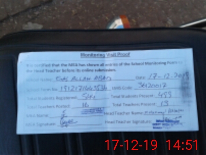 | Attendance Register | Head Teacher | MEA with School | Visit Proof |