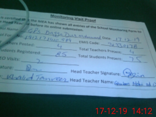 | EMIS Code: 31330178 | Name of School: GPS DAGGA DUR MUHAMMAD | |||