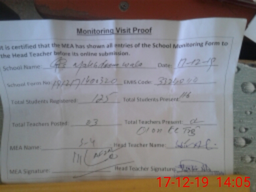 | Attendance Register | Head Teacher | MEA with School | Visit Proof |