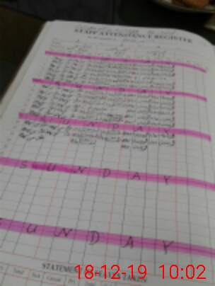 | CNIC | Full Name | Designation | R/C | Absence During Last Calender Month |