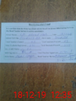 | Attendance Register | Head Teacher | MEA with School | Visit Proof |