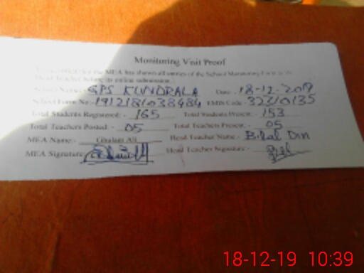 | EMIS Code: 32310135 | Name of School: GPS KUNDRALA | |||