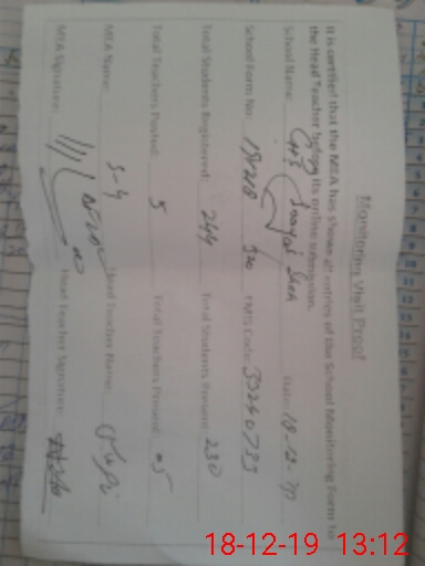 | Certified that this School was Inspected by the Undersigned MEA/DMO Today and the Information Stated Above is as Per Record. | |||||