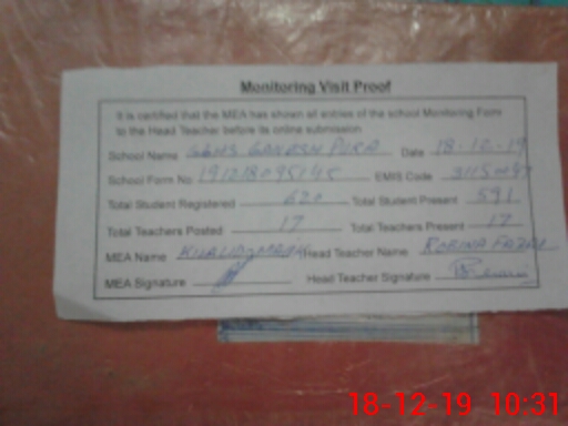 | EMIS Code: 31150047 | Name of School: GGHS GANESH PURA | |||