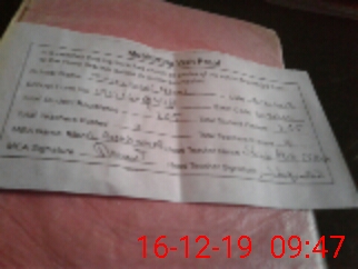 | Name: Ko**** Ta**** Designation: (School Headmaster's/Headmistress's) H T Phone/Cell Number: 03**** |