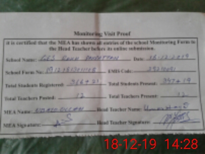 | Attendance Register | Head Teacher | MEA with School | Visit Proof |