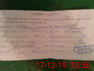 | Monitoring Date: 17-12-2019 | Start Time: 17-12-2019 09:33 AM | End Time: 17-12-2019 10:59 AM | Name of MEA: Gh**** Mu**** | |