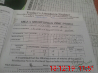 | Attendance Register | Head Teacher | MEA with School | Visit Proof |